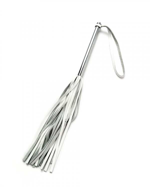Удобная многохвостная плеть выполнена из натуральной кожи в белом цвете