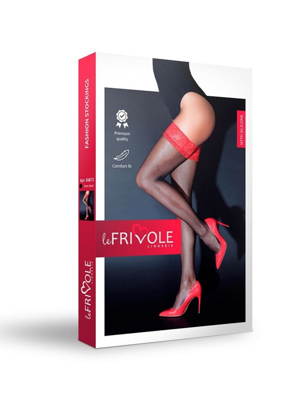 Чулки "Le Frivole" красная резинка на силиконе, черная сетка, S/M