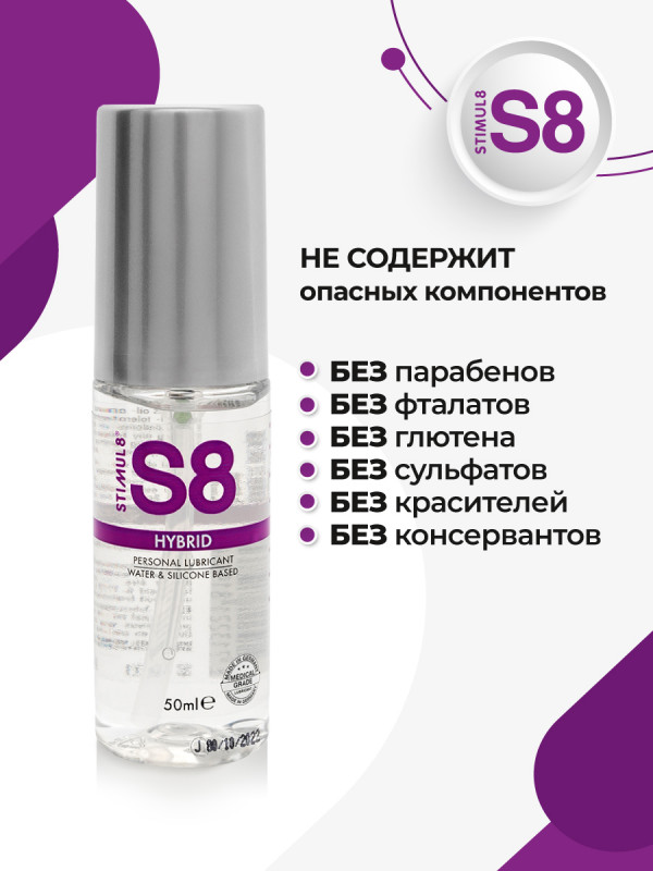 Гель "Stimul 8 Hybrid" сочетает в себе длительное скольжение силикона и нежность водной основы! Не скатывается, не создает чувство липкости и вязкости. Отлично смывается водой