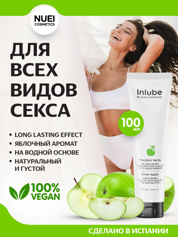 Уникальная новинка в мире интимных лубрикантов - гель с невероятно длительным эффектом скольжения, с восхитительным ароматом и вкусом зеленого яблока, с алоэ вера "Nuei Inlube Green Apple"!