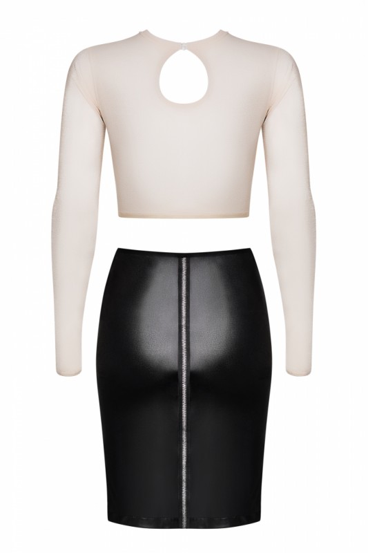 топ с длинным рукавом укороченный, юбка-карандаш из материала Wetlook, р-р 46-48