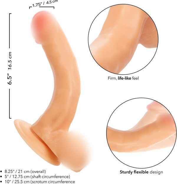 Ярко выраженная головка, изогнутый и рельефный ствол, мошонка, мощная присоска в основании - все это подарит настоящий фейерверк впечатлений!