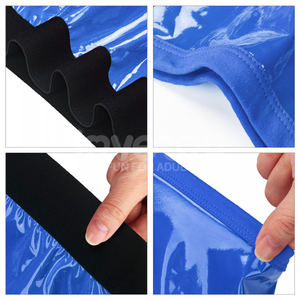 Трусики выполнены в синем цвете с желтыми полосками по бокам из винила. Провокационный блеск винила придает особенную пикантность образу! Молния спереди создает завесу тайны и скрывает истинное предназначение трусиков. Под молнией скрывается кольцо, к которому крепятся любые фаллоимитаторы и вибраторы.  Плотное кольцо гарантирует идеальную фиксацию фаллоса