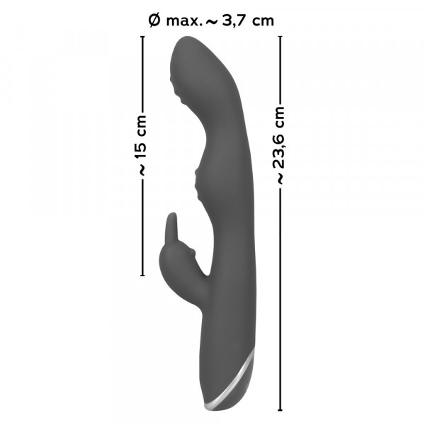 Форма девайса максимально анатомична. Рельефный ствол с изгибами и рельефом в виде объемных точек попадает точно в цель, а клиторальный стимулятор в виде классического кролика неистово ласкает снаружи, усиливая возбуждение!